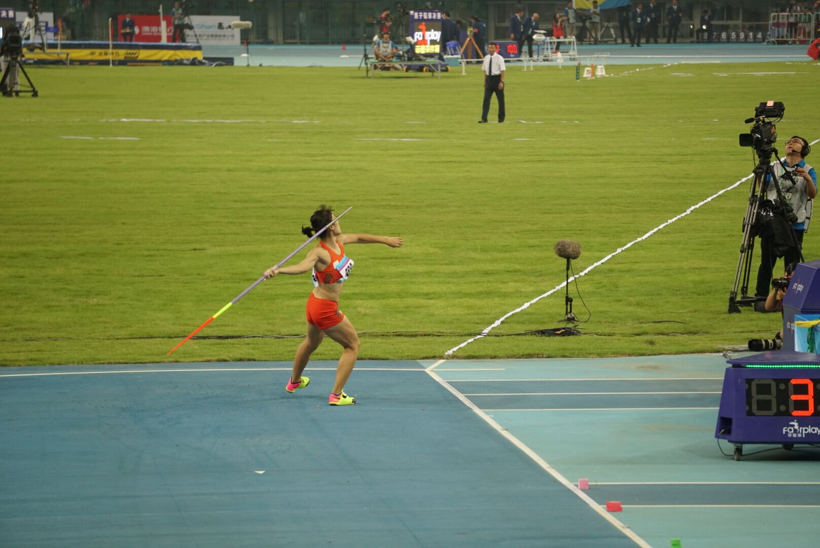 在刚刚结束的第十三届全国运动会标枪的决赛上,我校学子吕会会代表湖北队以62米70的成绩,摘得银牌。这也是吕会会第一次站在全运会的赛场。