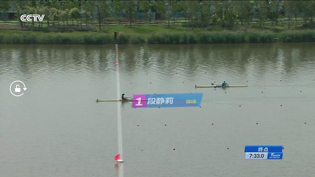 在最后500米的冲刺阶段,排在第三道的段静莉保持领先优势,上海队的陈云霞紧随其后。随后段静莉加大桨频将距离扩大,以7分32秒49的成绩第一个冲破终点,收获该项目的金牌。