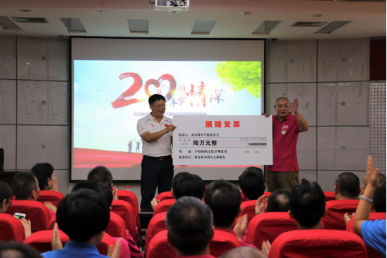 体本93级校友还向学校捐赠人民币6万元支持母校的发展。93级校友会会长张军向学校领导、教师以及同学们赠送了纪念品。