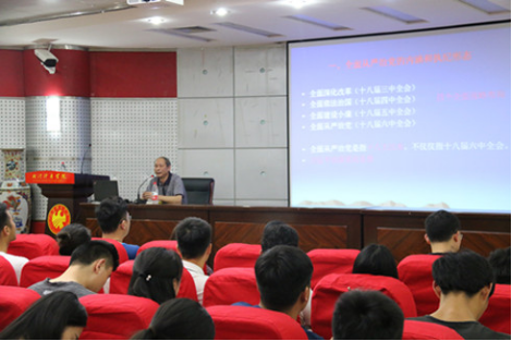 会上,朱书记以“全面从严治党要从每个党员做起”为主题,从全面从严治党的内涵和执纪形态、全面从严治党为什么要从每个党员做起和全面从严治党怎样从每个党员做起三个方面全面深刻地阐述了党要管党、从严治党的政治生态和党员责任。朱书记从十八大以来,习总书记四个全面战略布局开篇,以我党面临的“三个伟大”、“四大考验”、“四种危险”为背景,重点讲解了全面从严治党的核心问题,全面从严治党的六大抓手。接着,朱书记以当前基层党建工作中存在的主要问题进行“以案说纪”,揭示了一些基层党组织和党员政治观念淡漠、组织纪律涣散、漠视党纪党规等的现象。通过具体案例的呈现和讲解,使我们更加坚定了党性观念。最后,朱书记强调,作为一名党员,我们不仅要强化党规党纪教育、牢固树立“四个意识”,还要维护党中央权威,严明党的政治纪律,组织生活制度,积极开展批评和自我批评,保持清正廉洁的政治本色。