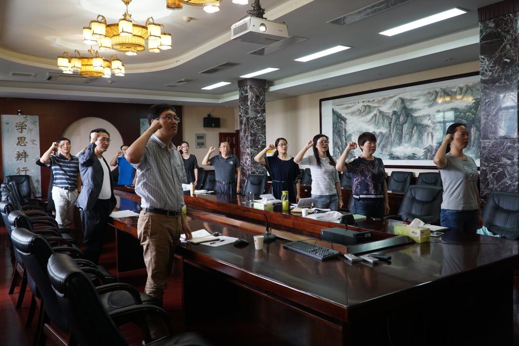 党课开始前,全体党员观看了《追寻习近平总书记的初心》视频,重温了入党誓词,支部委员通报了支部党费缴纳情况,全体党员还集体学习了《党章》。