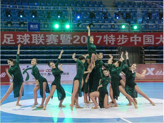 特步中国大学生足球啦啦队选拔赛南区总决赛是由中国大学生体育协会主办,全国啦啦操委员会、特步中国有限公司、中国大学生体育协会健美操艺术体操分会协办。为了能在此次比赛上勇创佳绩,艺术学院学生从春节过后就开始备战,并且牺牲了大量休息时间加班加点训练。