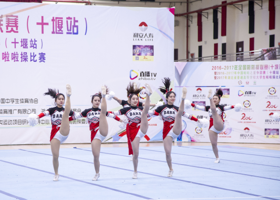 5月5日至7日,2016-2017年全国啦啦操联赛(十堰站)暨中国啦啦操之星争霸赛湖北省普通高等学校大学生啦啦操比赛在湖北工业职业学校举行,我校参赛队共获得了7枚金牌、4枚银牌、1枚铜牌及2项第四名的优异成绩。