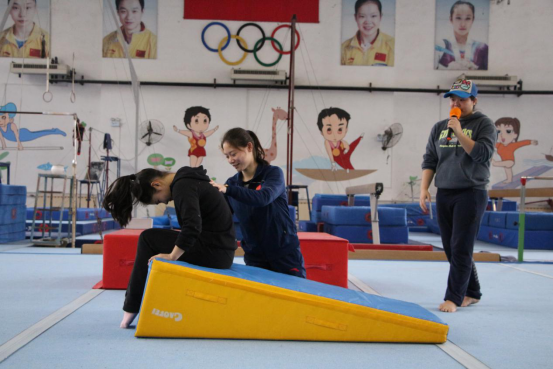 “体操还有自我保护的功能。我有个学生从小练习体操,一次,她在遭遇交通事故的时候,灵敏地运用体操动作保护了自己,结果没有受伤。”体操队教练赵汉华老师讲述了一个小故事,指出通过练习体操的基础,能够在发生摔倒等意外时迅速做出反应保护自己。
