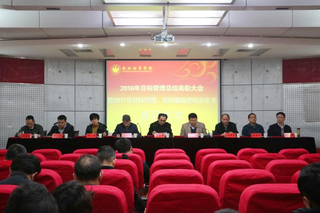 4月10日下午3:00,我校在东教三楼第一报告厅召开武汉体育学院2016年目标管理总结表彰大会暨2017年目标管理、党风廉政建设责任书签订大会。