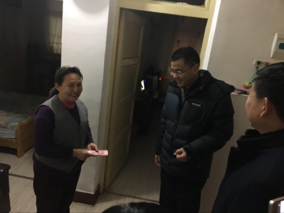 1月12日上午,卓刀泉街党工委书记杨建忠一行,来校慰问社区困难家庭,送上党和政府的关心和温暖。社区书记刘现军和社区工作人员陪同。