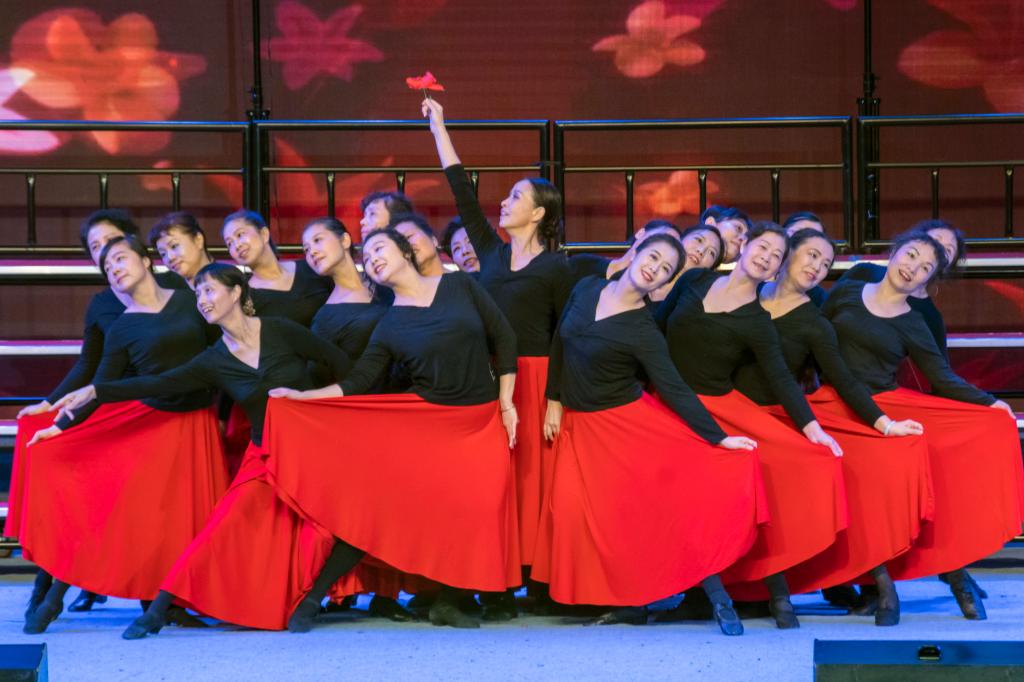在教学成果展示活动现场,各班学员在老师指导下先后登台展示:形体舞班《晚秋》、《轻舞飞扬》,民族舞班的《梁祝》、《生命之恋》、《花儿为什么这样红》,养生太极班的剑舞《蝶恋花》、《太极八卦扇》,太极拳(扇)班的《42式太极剑》、《太极功夫扇》,服装表演班的服装表演《韵》,体育舞蹈班的《我爱我的祖国》,声乐班的《共和国之恋》、《洪湖水浪打浪》等节目,对于学员们精彩纷呈的展示演出,现场观众不时爆发出热烈的掌声。