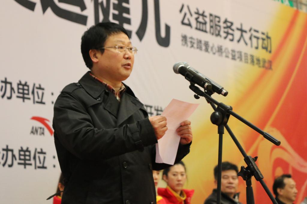 活动现场,校长吕万刚代表学校发表了热情洋溢的欢迎词,并介绍了学校近年来在教育、竞技体育中取得的优异成绩。中国奥委会市场开发部副主任王明晏介绍了五年来开展奥运健儿公益活动的成果,阐述了体育在健全青少年人格方面的独特作用,同时他向我校赠送了一件珍贵的礼物:带有奥运冠军签名的领奖服——冠军龙服。随后,安踏公司向我校捐赠了价值50万元的运动装备。