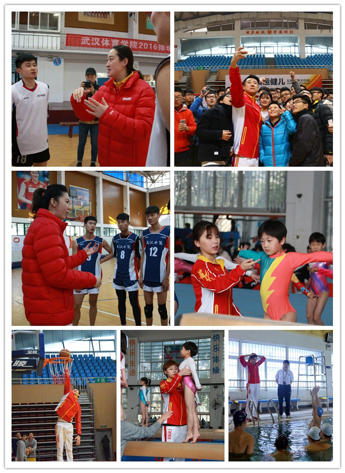 12月16日,武汉体育学院体育馆热闹非凡,体操奥运冠军何可欣、体操世界冠军眭禄、排球奥运冠军宋妮娜、排球世界冠军薛明、游泳世界冠军史婧琳、篮球名将刘子秋、李克等多位运动员纷纷亮相,在这里开展“奥运健儿公益服务大行动”活动。