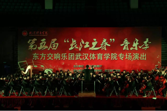 12月6日晚7点,为了纪念红军长征胜利80周年,第五届“长江之春”音乐季--武汉音乐学院东方交响乐团武汉体育学院专场演出在我校体育馆举行。本次活动是湖北省“高雅艺术进校园”系列活动之一,由湖北省教育厅主办,武汉体育学院、武汉音乐学院承办。校长吕万刚、党委副书记李格非、纪委书记朱建中及各职能部门、院系领导与近千名师生共同观赏了此次音乐会。