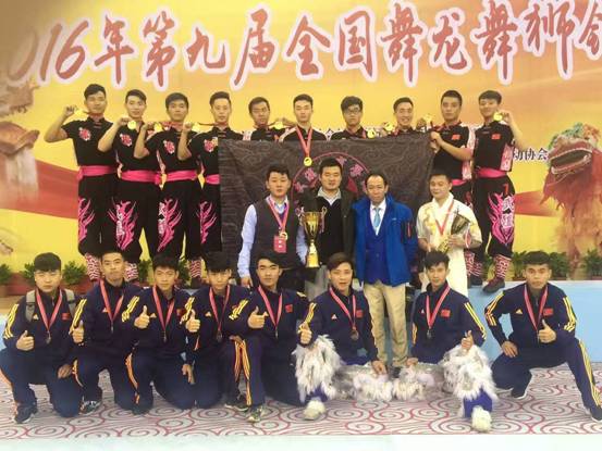 2016年11月24-29日,第九届全国舞龙舞狮锦标赛在南京举行,来自全国的28支舞龙舞狮团队上演了一场“龙狮争霸”。武汉体育学院舞龙代表队以1分17秒69的成绩获得男子障碍舞龙冠军。在男子舞龙自选的比赛中,武体龙队以9.19分(高出第二名0.49分)的优异成绩夺冠。