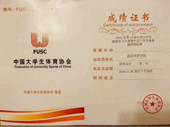 武汉体育学院健源健身健美队参加了全部7个大项14个小项的比赛,共获得5金6银4铜,夺得团体总分第一的好成绩。此次比赛我校共选拔了31名学生参加,由健身健美专项教练齐占永、董琨炜、体育科技学院教练王维带队;体育科技学院术科系书记徐京放领队。此外,齐占永和董琨炜还参与了本次比赛的裁判工作。