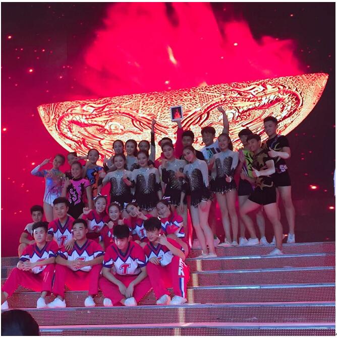 据悉,健美操教研室王操惠、王佩、陈威寅和舞艺教研室饶燕、体育舞蹈教研室黄鹏等老师与88名艺术学院学生在演出前赶赴嘉鱼,和当地演出团队协调配合进行了反复排练。因演出场地的特殊性,多名运动员受伤后依然坚持,受到了咸宁市领导的高度赞扬。