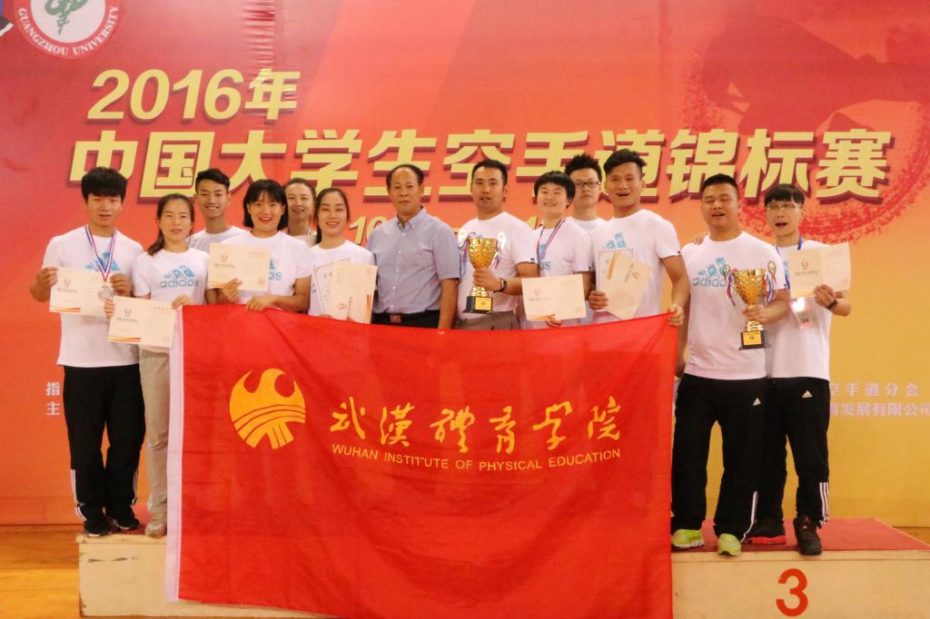 由中国大学生体育协会空手道分会主办、广州大学承办的2016年全国大学生空手道锦标赛于10月9日至13日在广州大学体育馆举行,本次比赛来自全国各地30所高校,320余名学生运动员参加。比赛中,我校学生在在运动学院庞俊鹏老师的带领下顽强拼搏、不畏强手,凭借过硬的专业技能和良好的心理素质取得2金2银6铜的优异成绩。