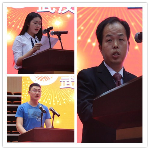 体育工程与信息技术学院马勇教授作为教师代表发言,他从大局视野出发,指出未来的四年是大数据的时代,更是创业和体育的时代,他希望新生做好大学四年的规划,成为有责任有担当的青年;来自武术学院的2016级新生代表庄雨和国际教育学院的2014级老生代表辛尧也分别作了发言。