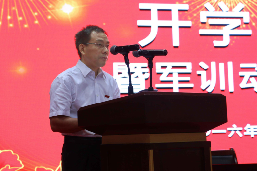 副校长漆昌柱作新生军训动员报告。他指出,军训是每个人成长的必经过程,是磨练意志、锻炼体魄的有效途径,他希望组织训练的单位要加强管理,新生要端正态度,团结互助,走好大学第一步。