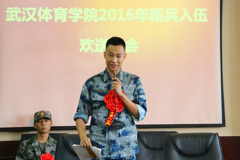 武汉体育学院副校长张飙,有关部门以院系负责人和应征入伍的34名新兵及部分家长参加了欢送会。会议由我校武保处处长耿保民主持。