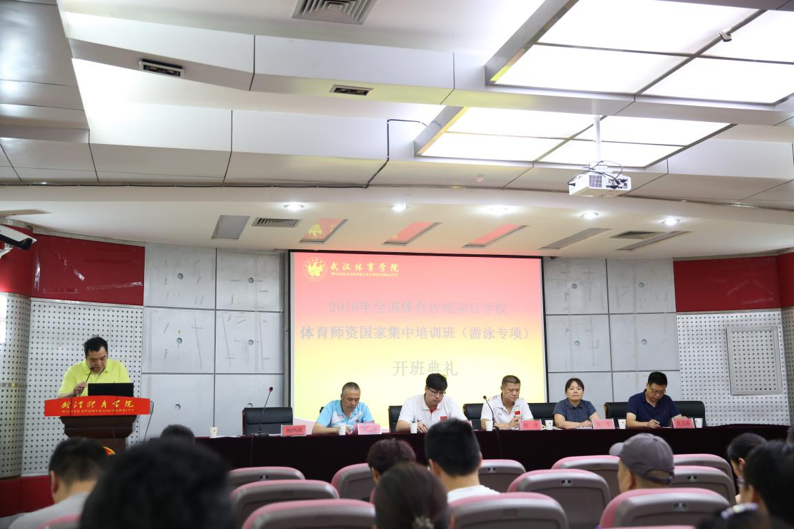 由国家体育总局青少司、教育部体卫艺司主办,武汉体育学院承办的2016年全国体育传统项目学校体育师资国家集中培训班(游泳专项)于6月30日至7月10日在我校举行。来自北京、天津、上海等19个省市的传统项目学校体育游泳专项的80名教师参加了培训。