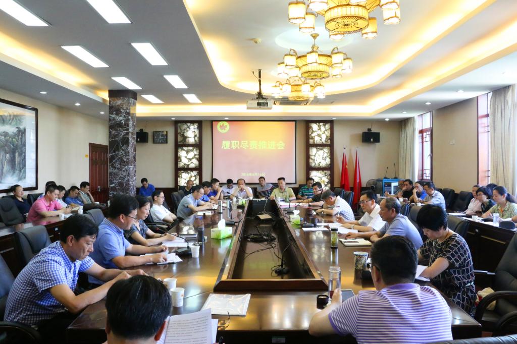 6月16日下午,学校在行政楼411会议室召开履职尽责工作推进会。党委书记彭道海、党委副书记李格非、纪委书记朱建中、副院长徐屏、张飙出席会议,各单位党政主要负责人参加了会议。会议由彭道海书记主持。