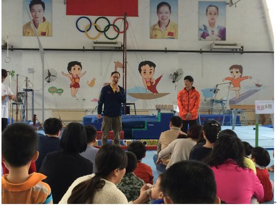 “玩体操,小机灵,玩体操、样样行,玩体操、我快乐,玩体操、我聪明……”艺术学院院长魏旭波教授在活动现场通过一首他自己创编的快乐体操主题儿歌,向家长们介绍了快乐体操项目在促进儿童健康成长和全面发展身心素质的基础作用与价值。