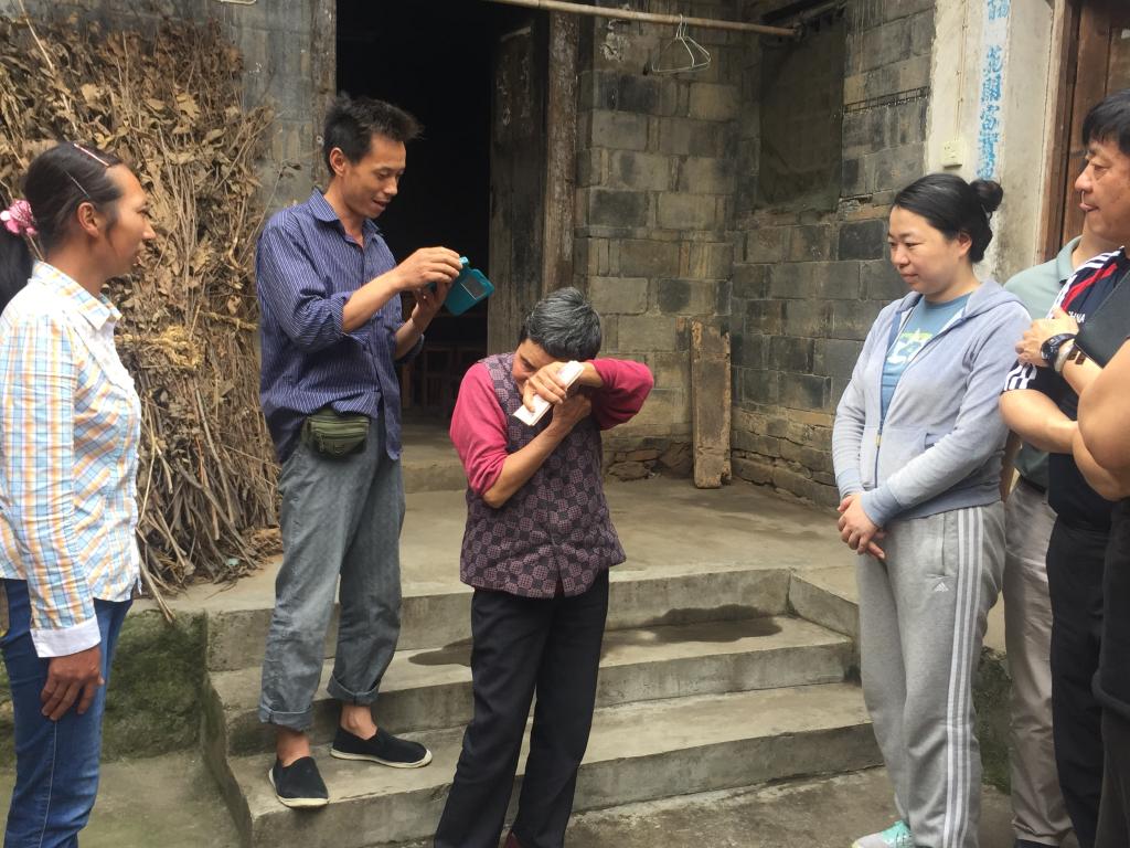 6日下午,王兵、潘高峰等一行人与驻村“三万”工作队员进行了对接,把体育教育学院14个基层支部捐助的2万多元善款送到6个贫困户家中。在困难户喻秀容的家中,当体理教研室李莉老师将救助款交到喻秀容的手中时,她激动地流下了眼泪。