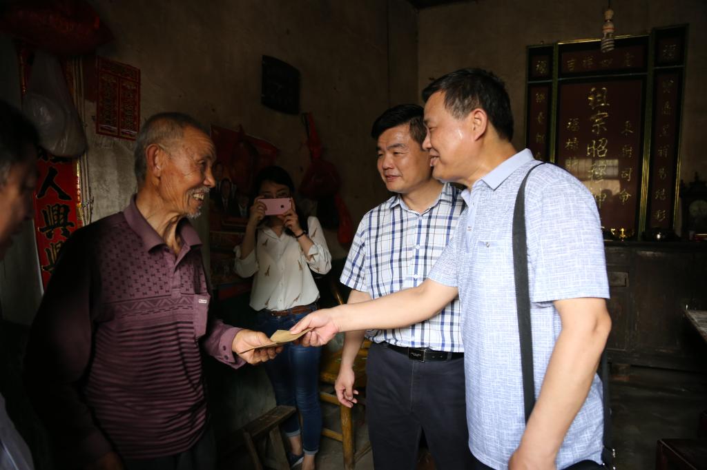 丰店镇方岗村地处丘陵地带,交通闭塞,道路崎岖,部分路段无法通车,张飙副校长一行通过步行前往对口帮扶贫困村,走村入户,访民情、听民意、解民忧,详细掌握贫困户的实际状况,了解他们存在的现实困难,为进一步开展好精准扶贫工作打牢基础。组织人事党支部、纪检审计党支部分别给结对帮扶的贫困户送去了慰问金。