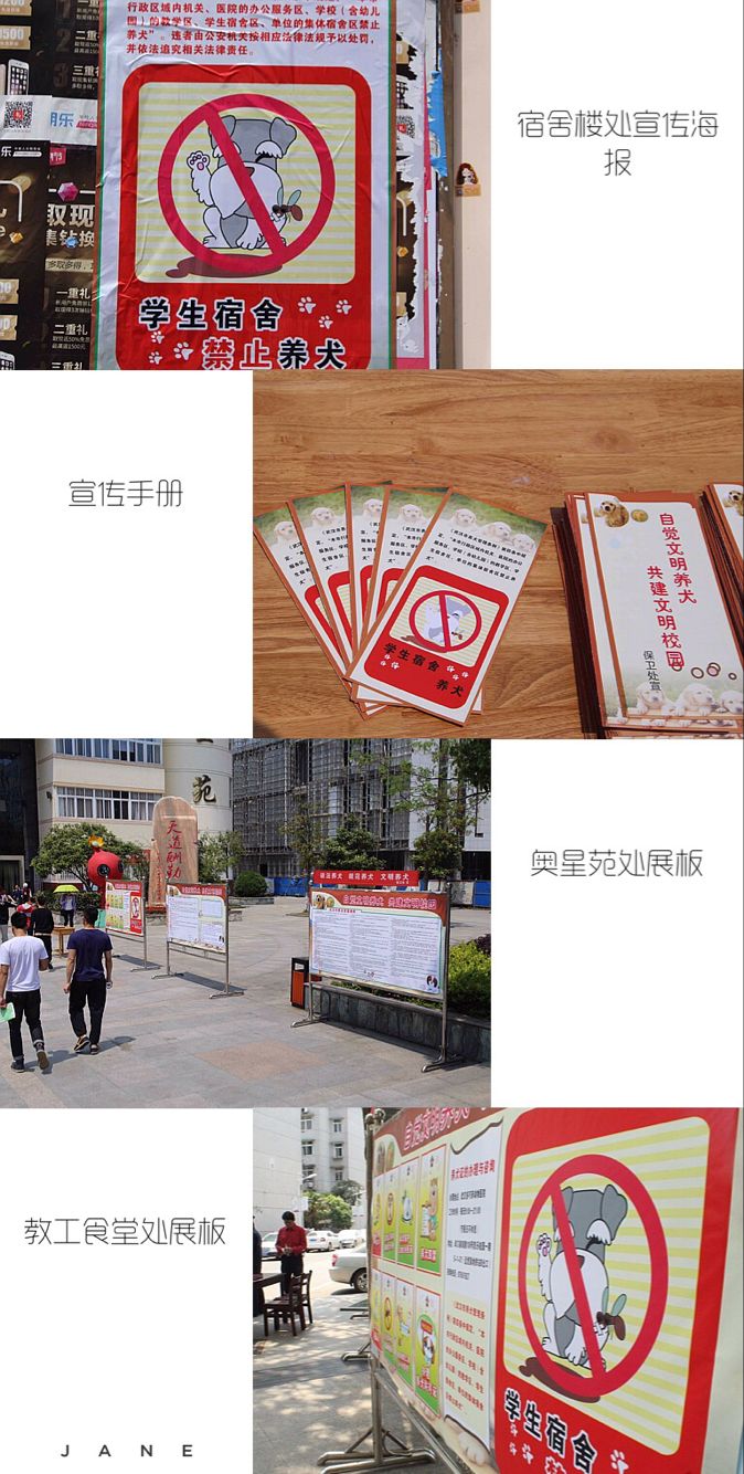 4月19日中午,学校保卫处、卓刀泉派出所、居委会、后勤处联合在教工食堂及奥星苑广场前开展了“自觉文明养犬,共建文明校园”的宣传活动,校内养犬专项整治行动正式拉开帷幕。