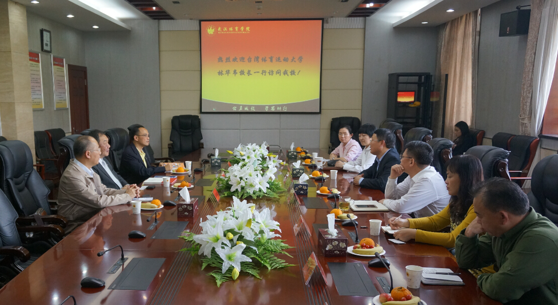 4月14日下午,台湾体育运动大学林华韦校长、体育学系吴鸿文主任和研究发展处国际事务组许立宏组长一行三人来访我校。吕万刚校长、徐屏副校长及校办公室、国际交流处、国际教育学院、竞技体育学院相关负责人出席会见。