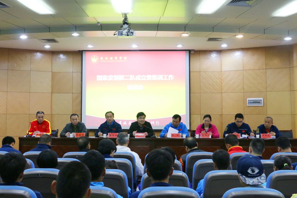 4月7日下午14:30,国家皮划艇二队成立暨集训工作动员会在我校东教学楼第二报告厅顺利召开。国家体育总局水上中心副部长李欣,武汉体育学院副校长张飙,国家皮划艇二队全体成员,竞技体育学院、竞赛与场馆中心相关领导和教研室、科室的负责人徐菊生、姜长林、张豪杰、张华杰、谢庆荣参加会议。会议由竞技体育学院院长徐菊生主持。