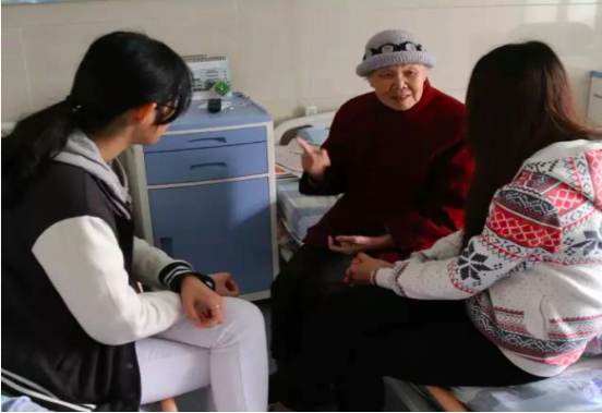 (运训学院志愿者们陪敬老院的老人“唠家常”)