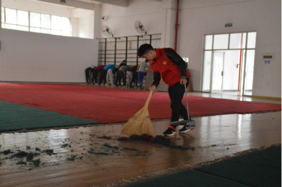 研究生院则在奥星苑广场设立服务站点,对同学们进行运动康复等方面的指导。新闻传播学院、经济与管理学院的志愿者们沿湖清扫垃圾,还东湖一片清;运动训练学院、健康科学学院的志愿者们将图书馆作为服务阵地,打扫卫生、图书归类,以方便师生借阅。武术学院的志愿者们则走进了他们每天训练的重竞技馆,开展卫生大扫除,真正做到了从身边做起、为自己和他人营造出一个更好的学习生活环境。