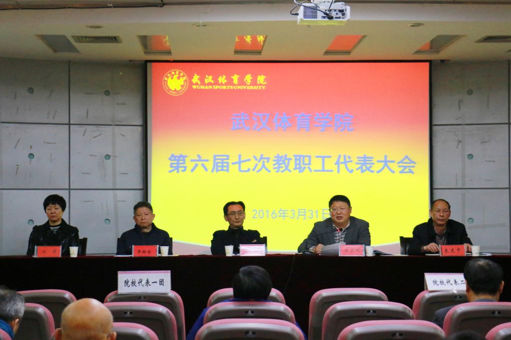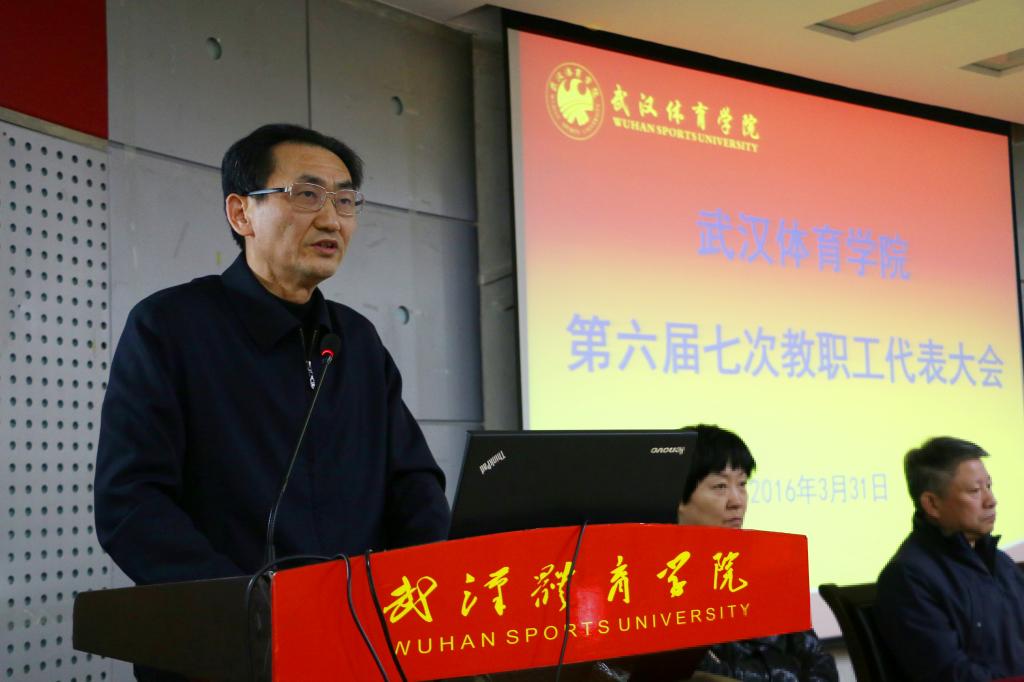 3月31日上午8:00,武汉体育学院第六届七次教职工代表会闭幕式在东教学楼三楼第一报告厅举行,校领导和全体教代会代表参加,党委书记彭道海作大会总结。院长吕万刚主持会议。