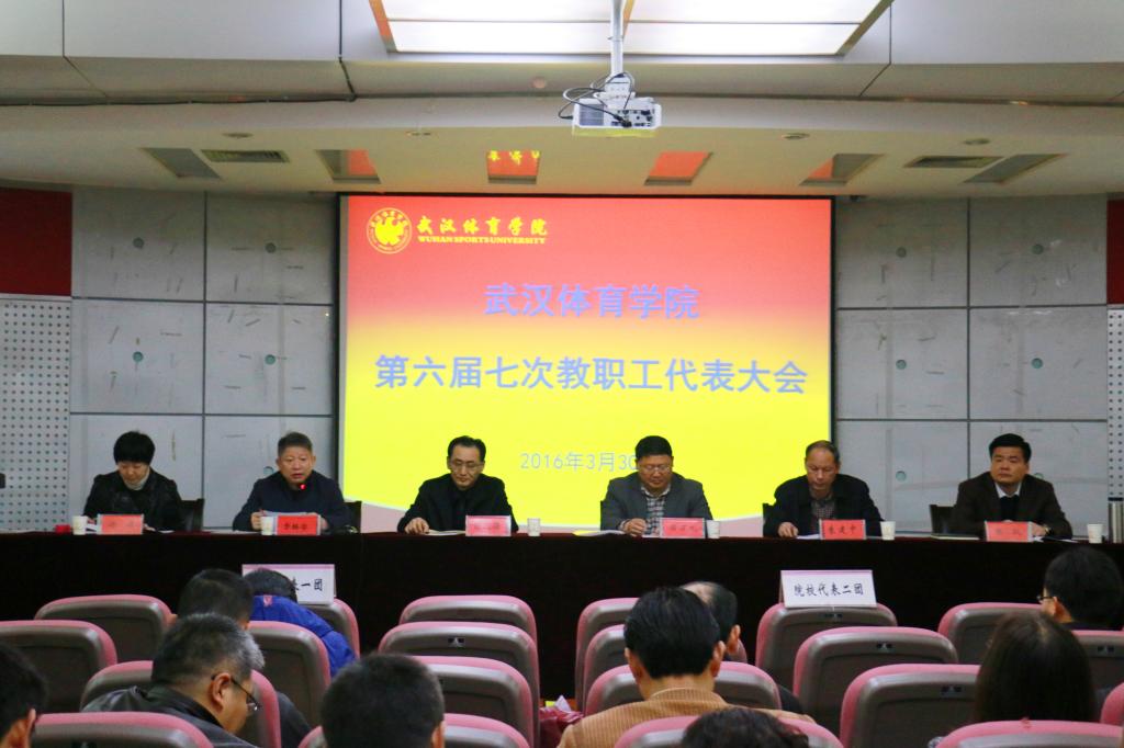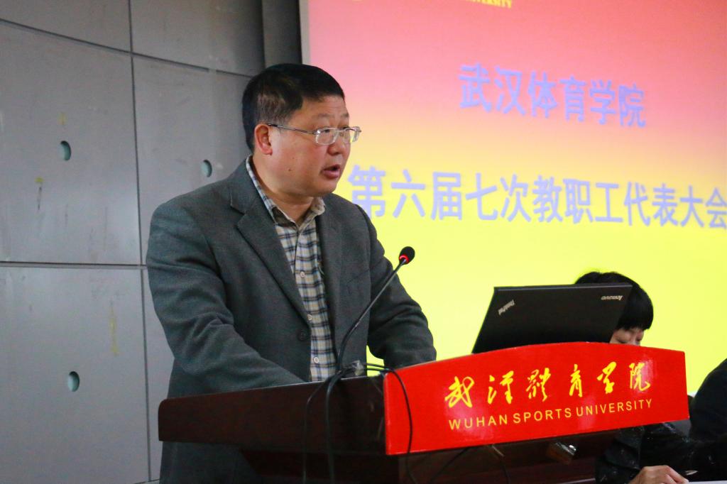 3月30日上午8:00,学校在东教学楼三楼第一报告厅召开武汉体育学院六届七次教代会,校长吕万刚代表学校做工作报告。党委副书记李格非主持会议。