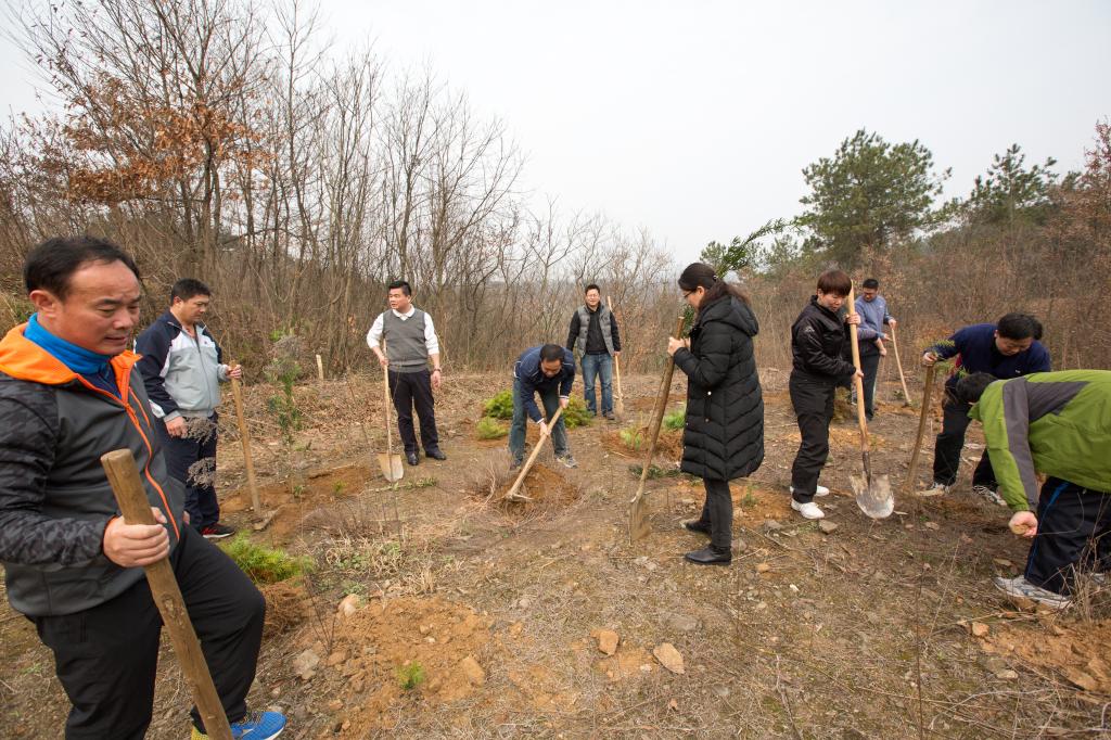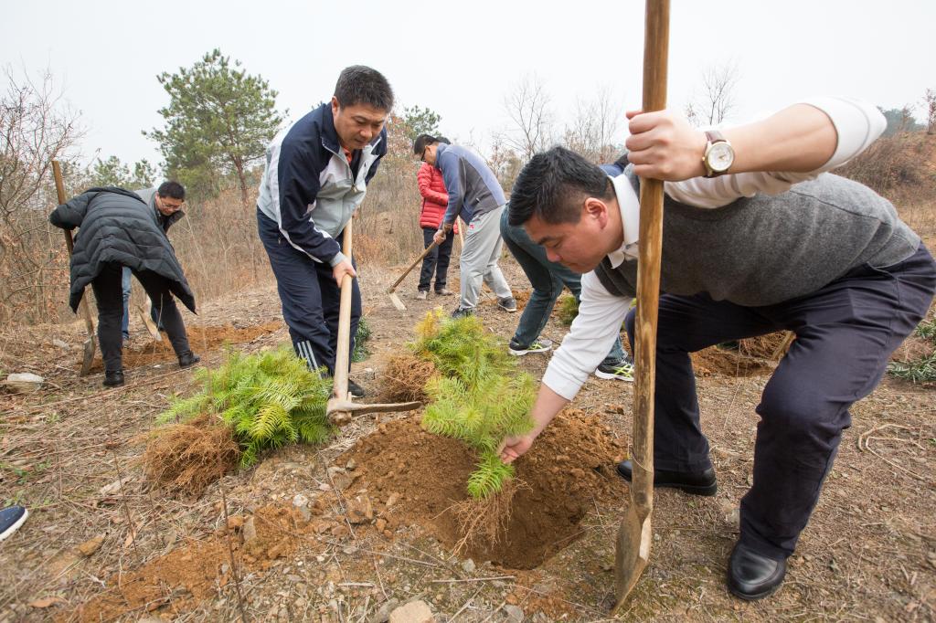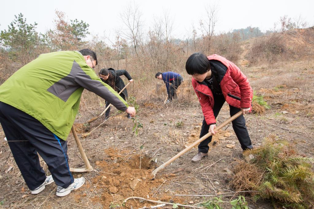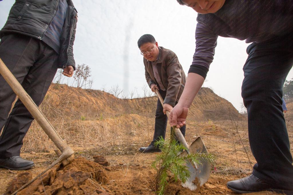 在植树现场,大家热情高涨,有的挥锹挖窝、有的铲土、有的扶苗、有的浇水,为扶贫村增添了一片生机勃勃的绿色,它不仅见证武汉体育学院与丰店镇父老乡亲结下的深厚情谊,还将帮扶扶贫村发展林业经济,为扶贫村增收再造新血。