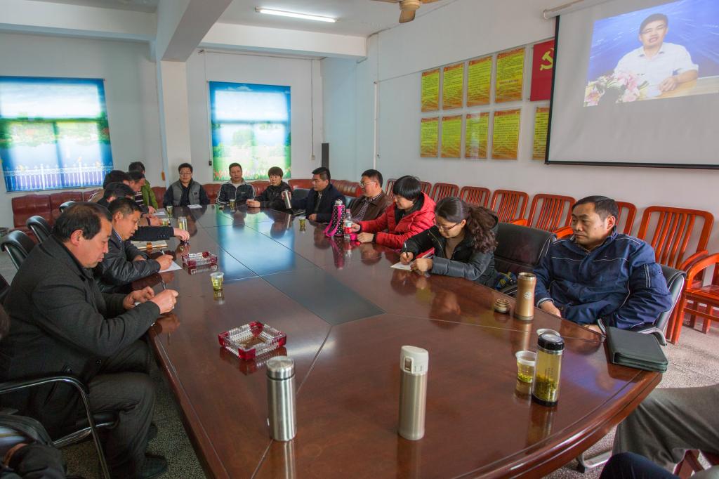 植树活动结束后,校领导一行与丰店镇政府领导、扶贫村村干部、驻村工作队在镇政府开展了工作调研活动。会上,镇政府充分肯定了驻村工作队在过去一段时间里为精准扶贫工作所做出的成绩,衷心感谢学校一直以来对丰店镇扶贫和“三万”工作的高度重视和大力支持。驻村工作队详细介绍了自驻村以来为贫困村争取到的社会资源、前期的工作情况以及下一步的工作规划构想。组织部部长王栎就我校精准扶贫即将开展的基层党组织“一对一”结对帮扶的思路和想法与大家进行了交流。