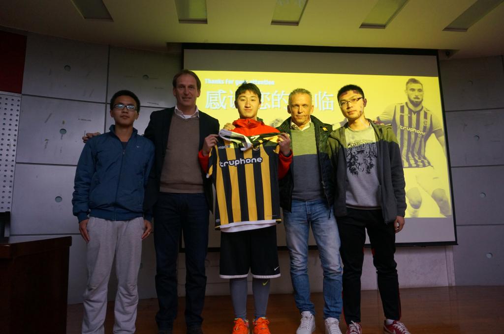 荷兰汉恩大学、维迪斯足球俱乐部及荷兰奥体中心代表分别介绍了荷兰教育体系与汉恩大学的专业特色、维迪斯足球俱乐部的青训体系及荷兰奥体中心的组织与运作模式。会上,双方就合作相关议题进行了热烈、深入的交流讨论。座谈结束后,荷兰维迪斯足球俱乐部首席执行官Joost de Wit先生和青训主管Edward Sturing先生为我校学生带来一堂精彩的讲座,并于讲座结束后来到湖边球场与学生切磋技巧。