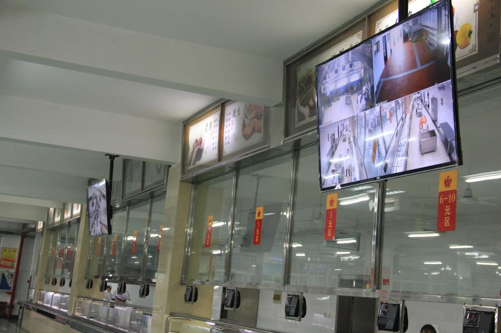 明厨亮灶工程即在奥星苑食堂操作间、备餐间、消毒间、仓库等关键部位和重点环节安装27台摄像机,2台大显示屏,不间断地切换播放操作间内部实时动态,将食堂的卫生条件、操作过程、餐饮具消毒等全景实时展示在广大师生面前,让广大师生把每盘菜“背后的故事”了解得真真切切,把每道工序流程尽收眼底,使餐饮服务部门全面接受广大师生监督,主动保障饮食安全,从而营造更加安全、更加放心的饮食就餐氛围。